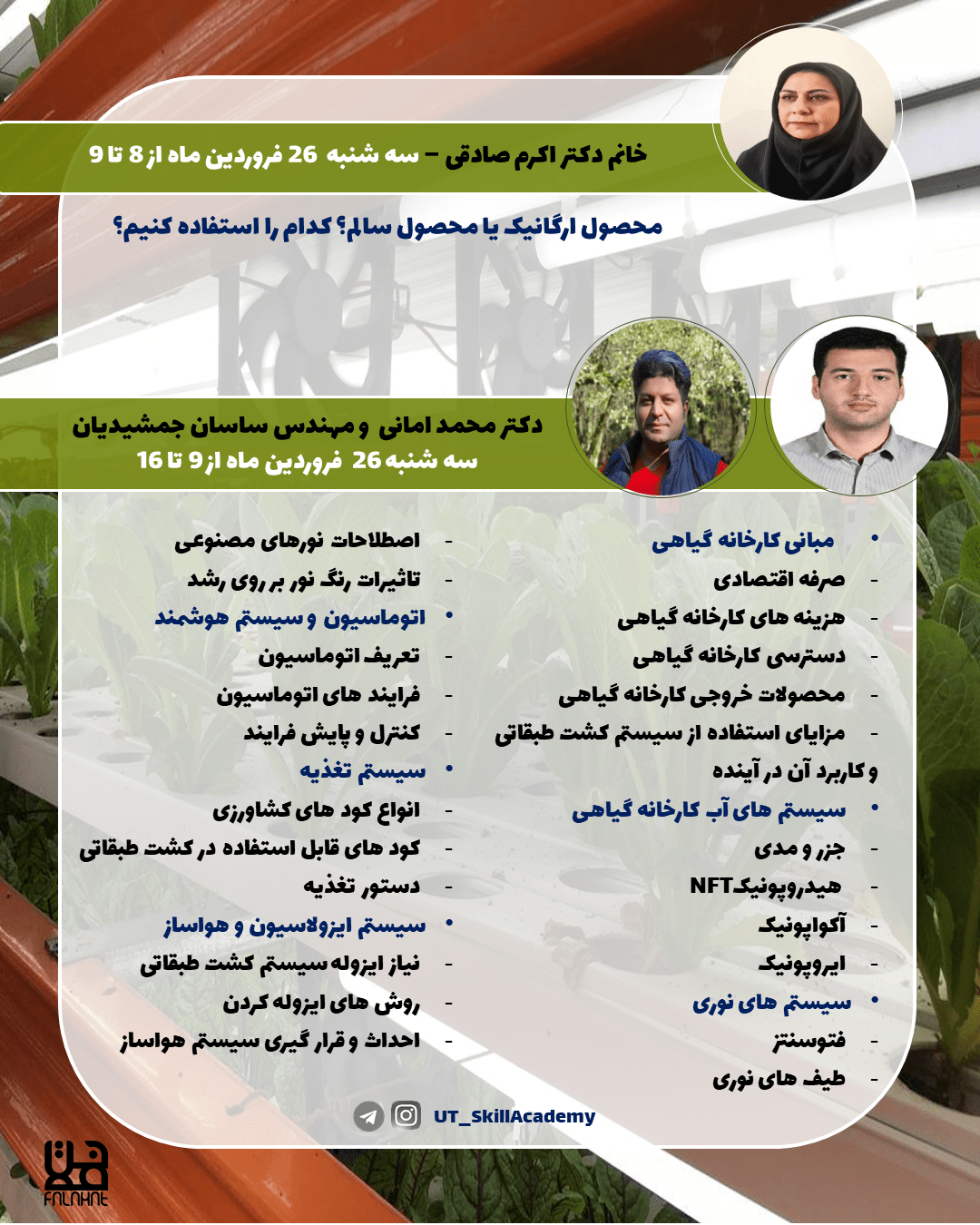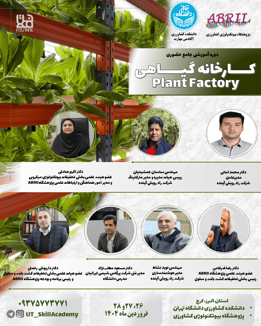 آیا میخواهید با جدیدترین روشهای کشت گیاهان در محیطهای کنترلشده آشنا شوید؟ دوره آموزشی «Plant Factory» با تدریس متخصصان دانشگاه تهران و پژوهشگاه بیوتکنولوژی کشاورزی، شما را با مبانی، کاربردها و مدیریت کارخانههای گیاهی آشنا میکند. این فرصت را از دست ندهید!