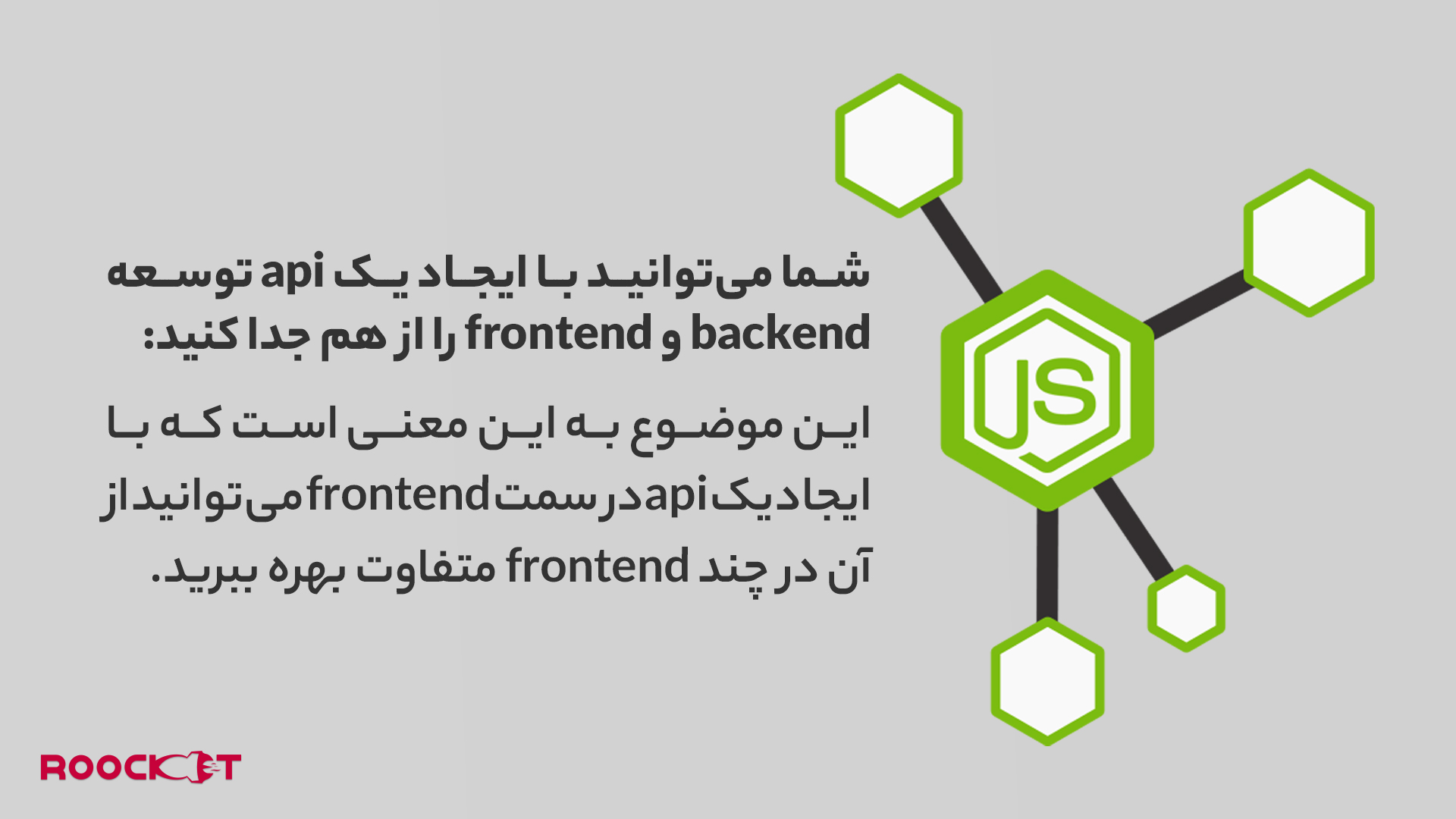 شما می‌توانید با ایجاد یک API فرایند توسعه Back-End و Front-End را از هم جدا کنید. این موضوع به این معنی است که با ایجاد یک API در سمت Front-End می‌توانید از آن در چند Front-End متفاوت بهره ببرید.